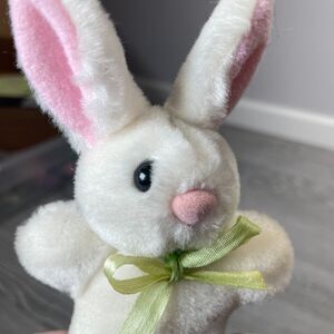 Vintage Caltoy Topper the White Bunny Rabbit Plush Green Bow Mini Stuffed Animal