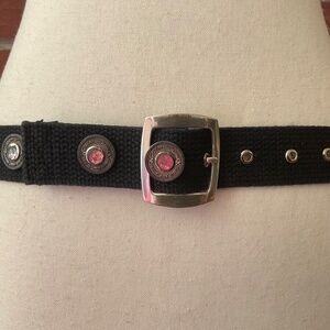 Calvin Klein , vintage adjustable belt.Black canvas and silver tone metallic studs-with brand name.