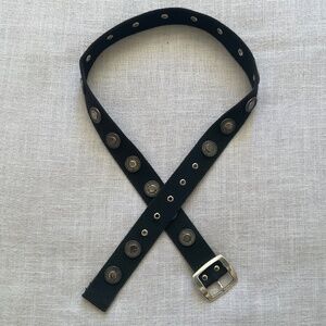 •Vintage Calvin Klein Black Canvas Belt Silver Metallic Studded Brand Name