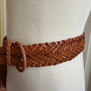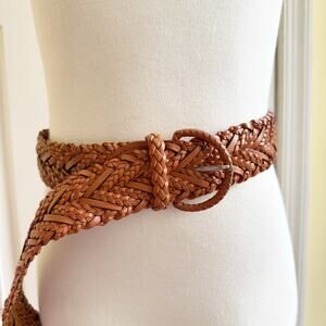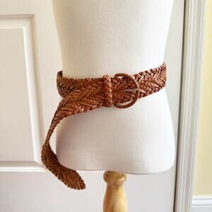 Vintage Calvin Klein Brown Braided Woven Thick Leather Belt Size Large Boho