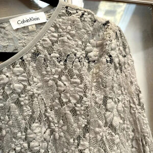 Calvin Klein Grey Stretchy Lace Floral Long Sleeve Blouse Size Large Vintage Y2K