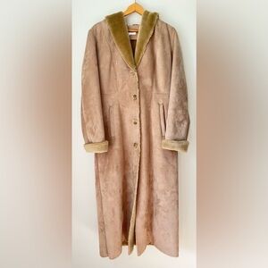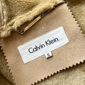Vintage Calvin Klein Jacket Women’s Medium Long Coat Faux Fur Suede Y2K