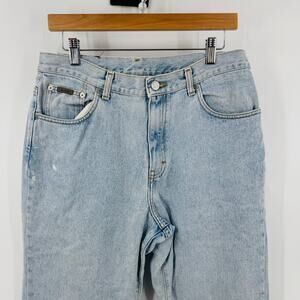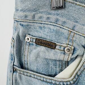 Authentic vintage Calvin Klein jeans made in the USA — a classic 1990s silhouette with a high rise, straight/tapered leg, and 100% cotton rigid denim (no stretch). Features traditional five-pocket styling, zip fly with button closure, and Calvin Klein metal hardware. Timeless light wash with subtle fading for that perfect worn-in vintage look.