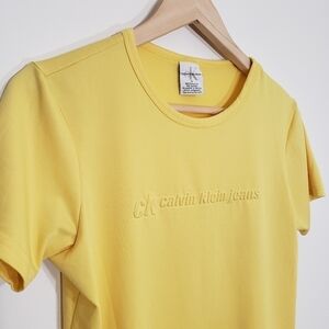 Vintage Calvin Klein Jeans Yellow Tee Shirt Y2K