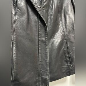 Vintage Calvin Klein Leather Coat Slim Style Black Jacket Motorcycle