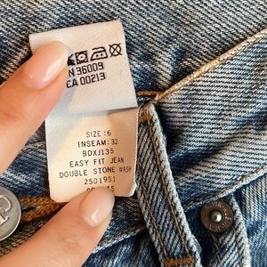 The most perfect vintage jean, Calvin Klein, beautiful light-wash color, white lace appliqués adorn the front only, straight-leg style. Trendy and timeless at the same time.
