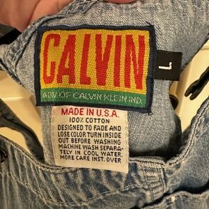 Vintage Calvin Klein Women’s Distressed Denim Overall Midi Skirt Cotton Made in USA