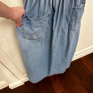 Vintage Calvin Klein Women’s Distressed Denim Overall Midi Skirt Cotton