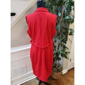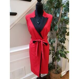 Vintage Calvin Klein Wrap Dress Women's Large Black Red Stretch Tie Waist Notch Lapel