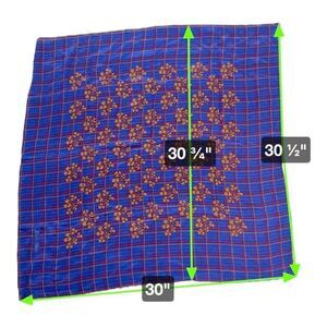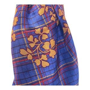 Vintage Calvin Klein Blue & Yellow Plaid Fall Flowers Floral Plaid Silk Scarf