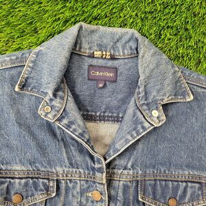 Add timeless style with this vintage Calvin Klein denim jacket in blue, size women's medium (20x24). A perfect retro 90s piece for a chic and casual look!