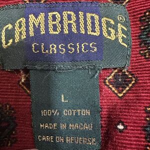 Vintage Cambridge Classics Corduroy Shirt Mens Red & Green Geometric L Button Up