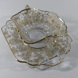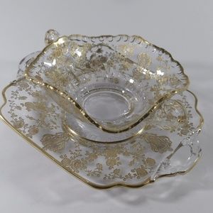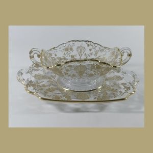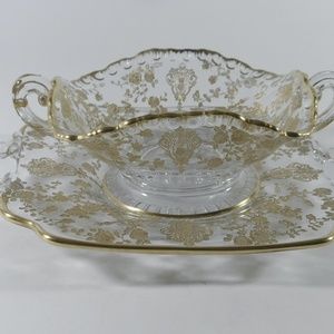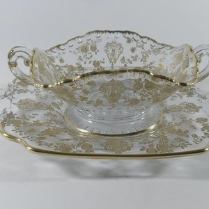 Vintage Cambridge Glass Rose Point Gold Relish/Candy Dish with Under Plate
