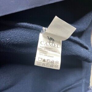 Vintage Camel Cigarette Jacket Men L Blue Flannel Lined Hood Full Zip Snap Coat