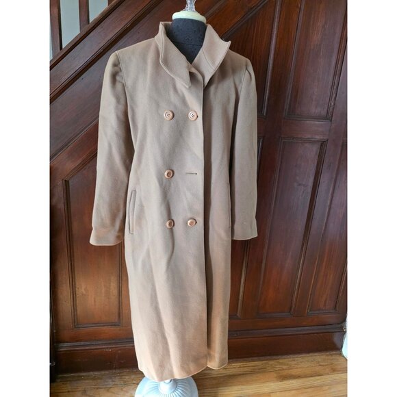Vintage Camel Double-Breasted Wool Coat Longline With Pink Satin Lining Womens