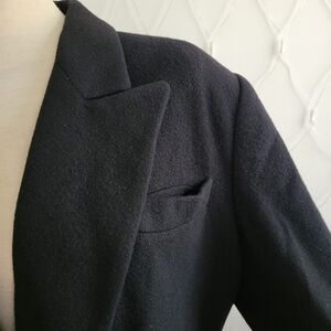 Button Closure. Tuxedo Lapels. Shoulder Pads.