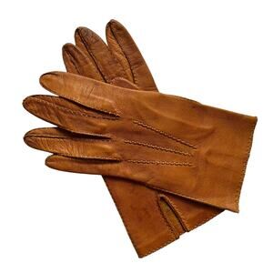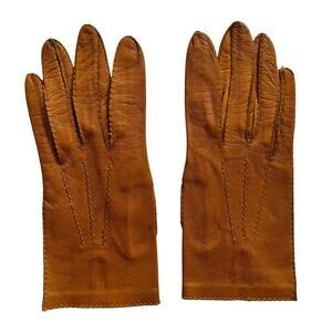 Vintage Camel Supple Leather Women's Shorties Driving Gloves Size 7-7.5