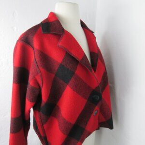 Vintage Cameleon 100% Wool Shrug Crop Jacket Red Buffalo Check
