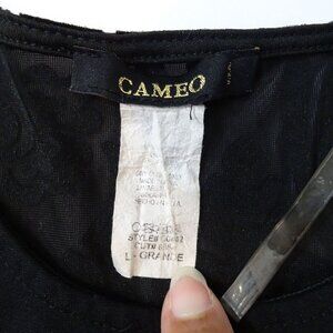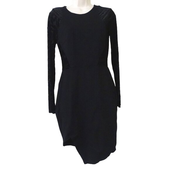 Vintage Cameo Black Long Sleeve Burnout Velvet Detail Fitted Dress Women Size L