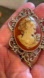 Elegant vintage cameo brooch featuring a detailed portrait in a silver ornate frame. Perfect for adding a classic touch to any outfit.