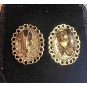Vintage Cameo Clip On Earrings Tiny Huggie Small Gold Tone Elegant