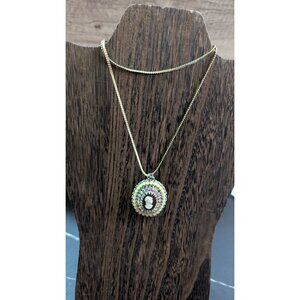 Vintage Cameo Pendant Necklace Beaded Rhinestones Intricate Victorian Estate
