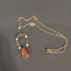 Vintage Cameo Pendant Necklace With Intricate Filigree Design