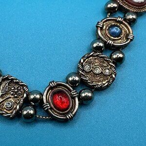 Vintage Cameo Slide Charm Bracelet with Gemstone Accents Ornate Victorian Design