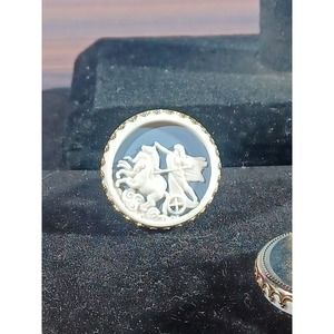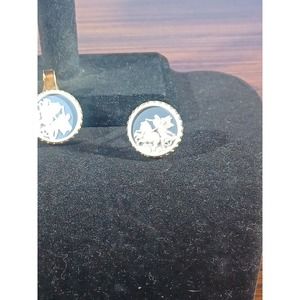Vintage Cameo Trojan War Cufflinks & Tie clip Blue and White Horses