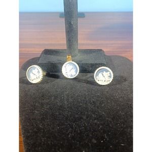 You get exactly what is pictured 2 cufflinks and a matching tie clip. Please look at all pictures for complete condition Any Questions Please Ask Prior to purchasing Thanks for looking