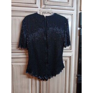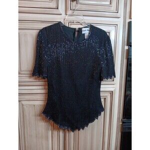 Vintage Camille Marie Black Beaded Short Sleeve Top - Size Small - 100% Silk