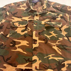 ~Vintage Camo Shirt Men's XL Williams Bay Button Up Deer Hunting Long Sleeve 90s..some light marks..overall good good vintage condition