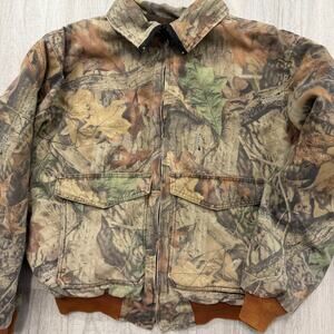 Vintage Camouflage Bomber Jacket Men's Large Boxy 90s Full Zip Camo Hunting 90s