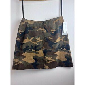 Vintage Camouflage Snap Front Mini Skirt 100% Suede Leather Size 10 NWT