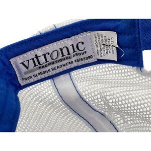 Pre-owned. When you look on the inside you can see discoloration around the inside headband. You can see this in the last photo. The inside label is cut. Some of the mesh threads are pulled up slightly.