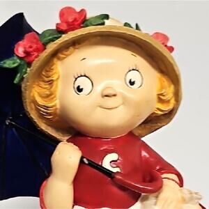 Add a touch of vintage charm to your collection with this adorable Campbell Kids figurine! This piece features a sweet girl enjoying a "Spring Stroll," complete with her trusty umbrella. It's a delightful depiction of childhood innocence and springtime joy.