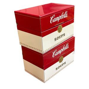 Vintage Campbells Soup Metal Recipe Holders Two Storage Boxes Empty