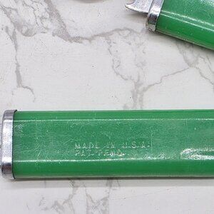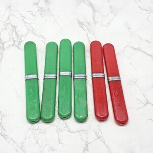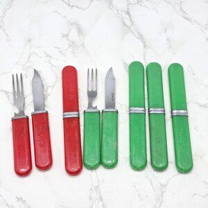 Vintage Camping Utensil Set of 6 Made in USA Red Green Folding Knife Fork Combo PAT PEND