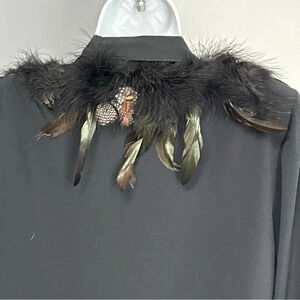 This is a unique and pretty black blazer with feather accent on the back of the collar.