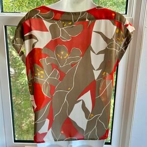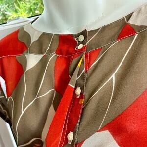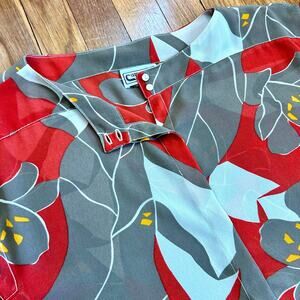 Vintage Campus Casuals Blouse – Red, White & Gray Abstract Floral – 1960s