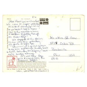 Vintage Canadian Rockies Postcard 1950s Athabasca Glacier Jasper National Park