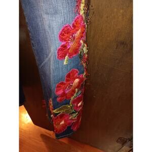 >Jeans/ Pants-Brand: Ny&C, Medium Wash Denim Jeans, Button/Zipper Closure, 5 Functional Pockets, Flare Style, Low Rise. Jeans Has Flower/ Floral Hibiscus Embroidery, Fringe, Rhinestone Details. Y2k Bohemian Vibes.