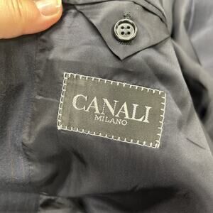 Vintage Canali Mens 2 Button Blazer Size 42R Blue Wool with Gold Pinstripe Made in Italy