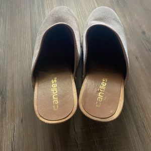 Vintage Candies Beige Platform Clogs Mules Heels Slides Shoes Wood Suede 7.5