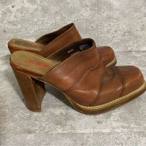 Vintage Candies Block Heel Mule Leather Brown 6.5 Patchwork Y2K CottageCore