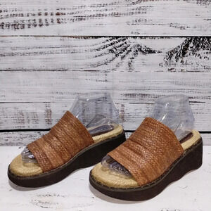 Vintage Candie’s Jute Platform Wedge Slides Tan 90s Y2K Sandal Size 6.5