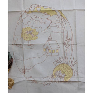 Vintage Candlewicking Embroidery Kit "Fall" Autumn Scene from Leisure Arts 1983