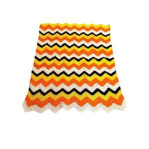Vintage Candy Corn Chevron Crochet Throw BlanketApprox. 36" x 43"