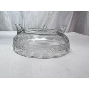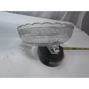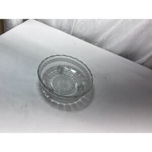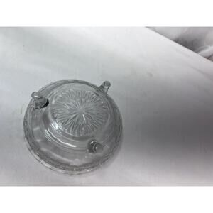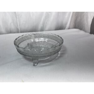 This vintage candy trinket dish is a beautiful addition to any collection. Made of crystal, it features three legs with rippled edges and a clear color. The dish has a round shape, measuring 5.75 inches in diameter and 1.5 inches deep, with a height of 2.5 inches. It is ideal as a candy dish or trinket holder and is in its original vintage condition.