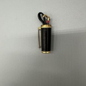 Vintage Cane Holder Brooch Pin Jacket Hat Brooch Gold Tone Black Leather 2”